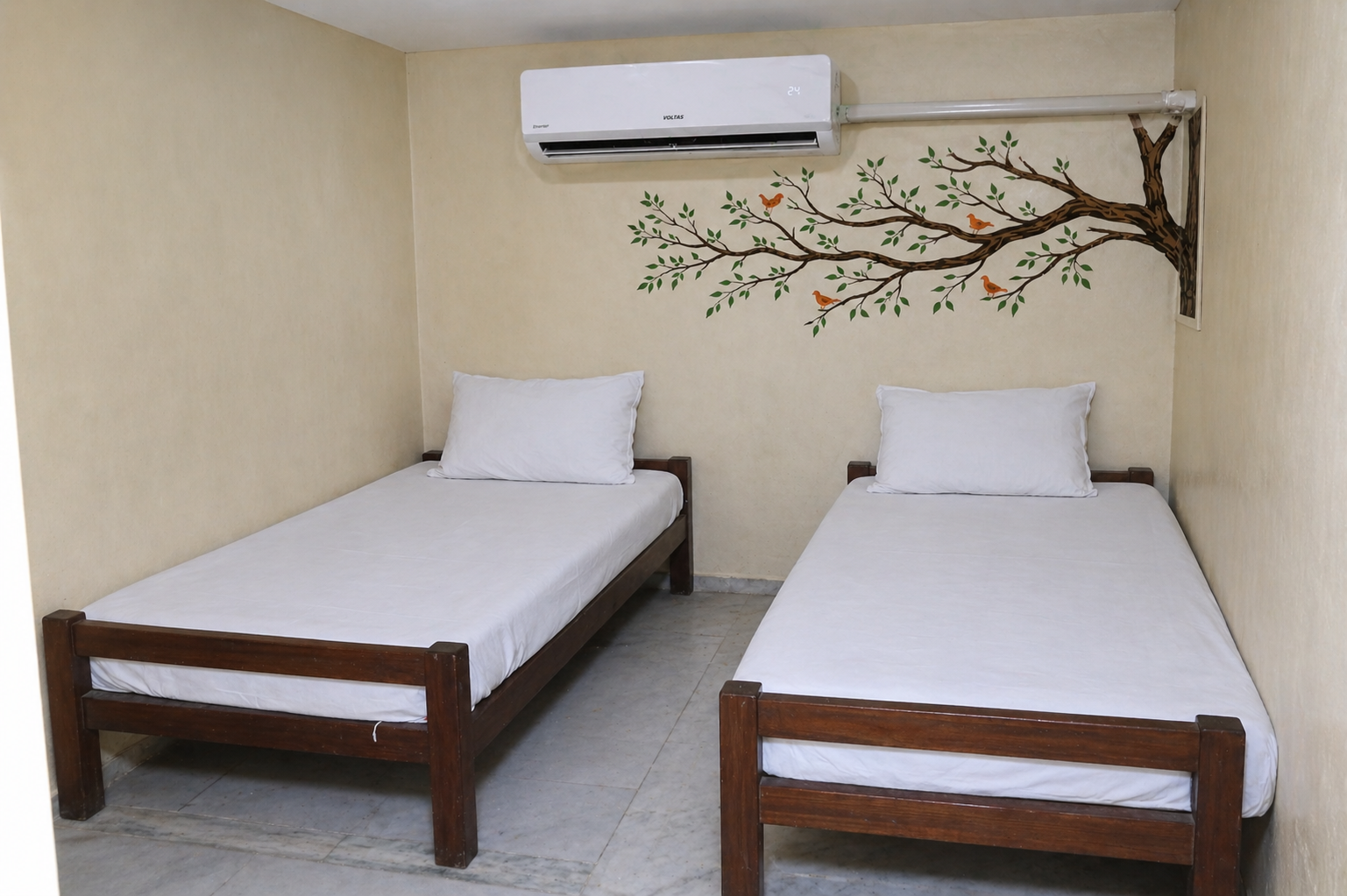 Although it is a double room, it is strictly allocated for single occupancy only to ensure privacy and a peaceful stay. Additional guests are not permitted by default. However, if required, one extra person can be accommodated with an additional charge of ₹250.